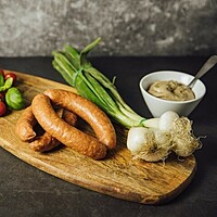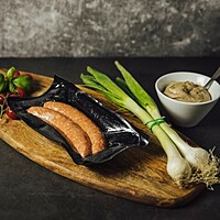 En grovmald korv i naturtarm som kryddats med vitlök, paprika och en gnutta ingefära. Korven innehåller hela 97%(!!) griskött är rökt med alspån och har en fin mild smak av vitlök och paprika. Passar utmärkt att både grilla och steka. Innehåller 2st korvar
