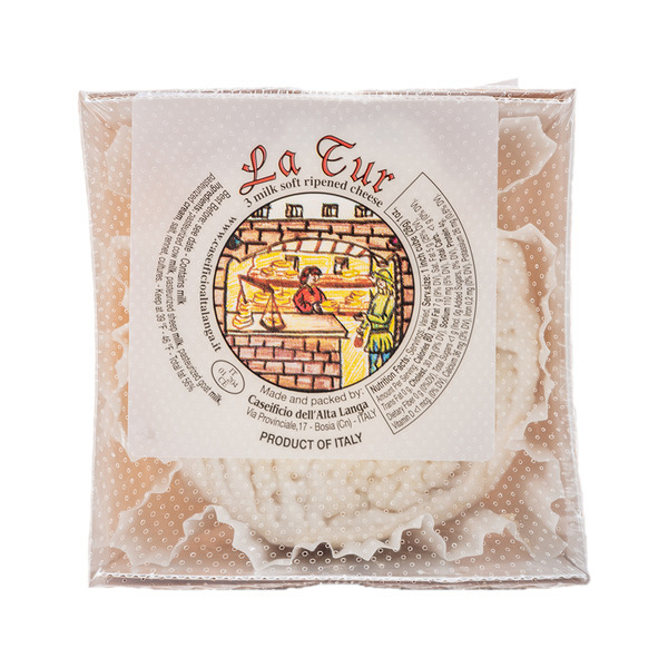En lågpastöriserad tremjölksost (gjord på ko-, får- och getmjölk) från Piemonte i nordvästra Italien. La Tur är en färskost med en mjuk gräddig kärna som är fyllig och samtidigt len i smaken. De tre olika mjölksorterna ger den en spännande arom av svamp kombinerat med syrlig grädde eller creme fraiche. Doften är kraftig med en skarp, syrlig lukt med svaga toner av svamp och skog. Ät den rumstempererad på en skiva surdegsbröd, gärna med lite dessertvin och vår fina citron & fikonmarmelad.
