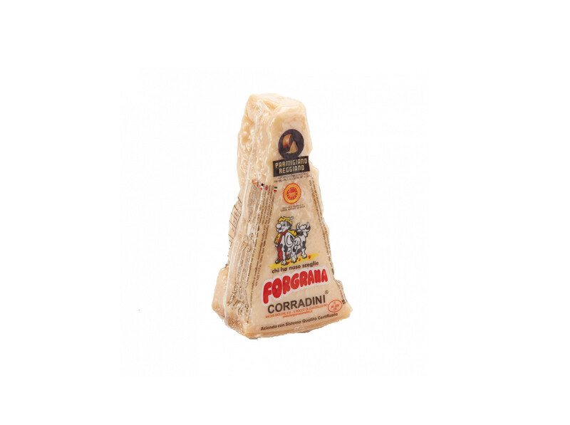Sedan 1850 har ostmakaren Forgrana Corradini producerat parmesan i den lilla orten Guastalla i hjärtat av Emilia Romagna. Efter tolv månaders lagring har Parmigiano Reggiano en ganska mild men samtidigt balanserad smak. Om du föredrar en mildare lite krämigare parmigiano så passar den här lagringstiden utmärkt för dig - gärna ihop med ett glas torrt vitt vin.
