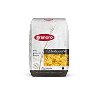 Farfalle är den klassiska fjärilsformade pastan som är mycket mångsidig. Passar utmärkt i både tomat- och gräddbaserade såser eller i t.ex. en kall sallad. Från Granoros "Dedicato"-sortiment, vilket innebär att pastan har skurits till med hjälp av skärmaskiner med bronsknivar. Detta gör att såsen fäster extra väl.