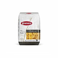 Orecchiette (små öron) är en liten skålformad pasta som är känd för regionen Apulien. Den passar utmärkt med lite krämigare och släta såser. Från Granoros "trafilatura ruvida" sortiment, vilket innebär att pastans yta har har ruggats upp vid tillverkningen som gör att såsen fäster extra väl.