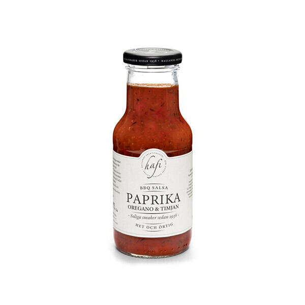 Paprika, Oregano & Timjan är Hafis tredje salsa och de har valt att göra den lite hetare än föregångarna. Smakkombinationen gör sig fint till lammrätter eller rostade rotfrukter. Utmärkt att blanda i dressing eller med yoghurt till kall sås.