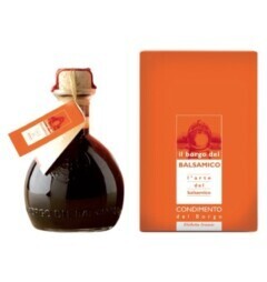 Il Borgo del Balsamicos Orange Label innehåller en lite mindre andel av lagrad druvmust om man jämför med Red Label och har därför en tunnare och lite syrligare smak. Som övriga av Il Borgos balsamvinägrar har den lagrats flera år i tunnor av olika träslag för att långsamt åldras och utveckla sin unika och komplexa arom och smak. Denna balsamvinäger passar utmärkt som en bas till en salladsdressing - en riktigt lyxig husvinäger!