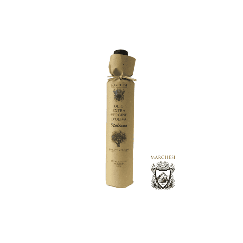 En mycket allsidig extra jungfruolja på 100% italienska oliver från producenten Marchesi utanför Rom. Marchesis olivolja har en ljusgrön-gul färg med en behaglig smörig smak med en mild eftersmak av peppar och gräs. Marchesis olivlundar är anlagda enligt traditionella metoder där man lämnar gott om plats mellan olivträden. Detta för att få friskare träd så att man slipper använda bekämpningsmedel i sina odlingar och kan kultivera sina oliver på ett hållbart sätt.