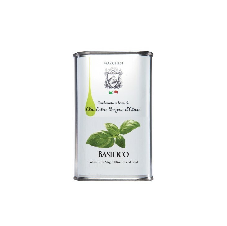 En fin extra jungfru olivolja från producenten Marchesi utanför Rom. En fräsch olivolja som smaksatts med basilika från Italien. Den här jungfruoljan ger en frisk och fräsch smak till dina maträtter. Passar utmärkt till pizza eller klassikern Caprese (tomat och mozzarella).